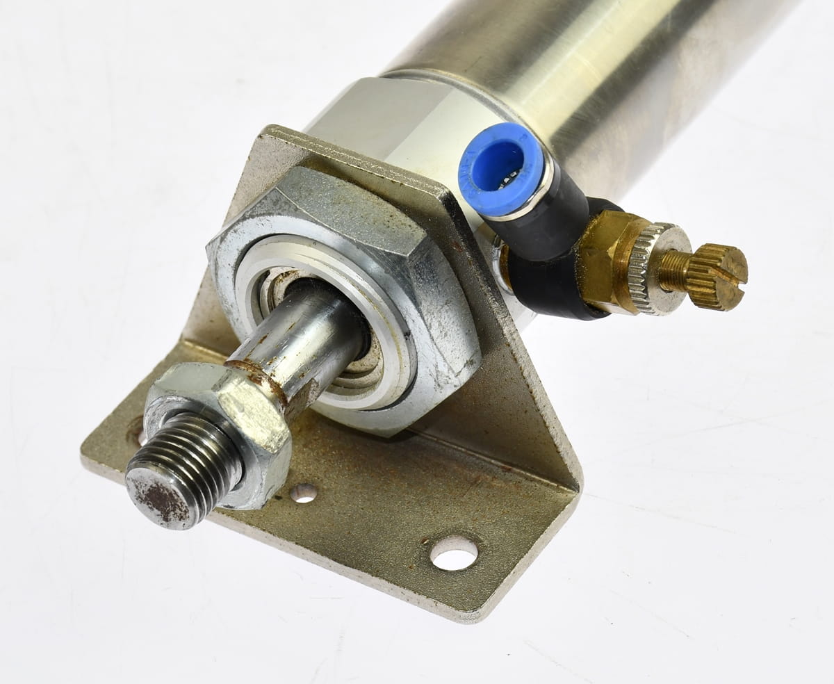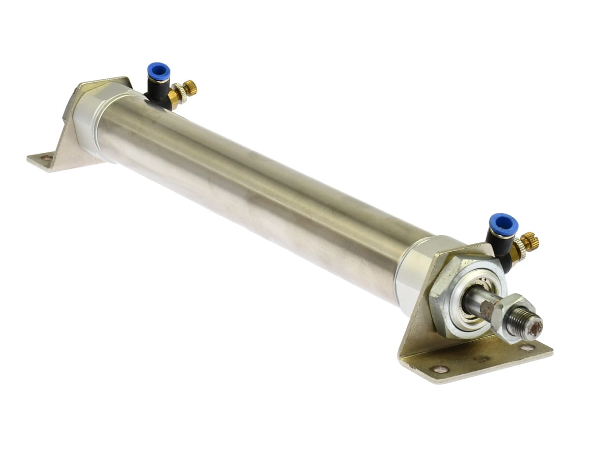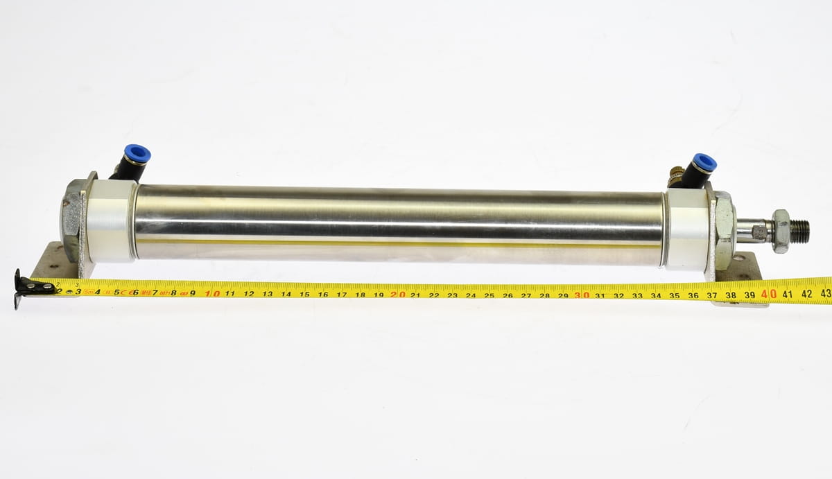 Używany, siłownik pneumatyczny renomowanej firmy TPC Pneumatics o symbolu: TCM2B40-250A-C73K. Siłownik znajduje się w idealnym stanie, Pochodzi z demontażu całkowicie sprawnych maszyn przemysłowych. W zestawie są dwie szybkozłączki z funkcją regulacji przepływu oraz dwa uchwyty mocujące siłownik.