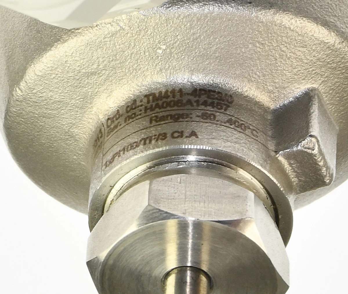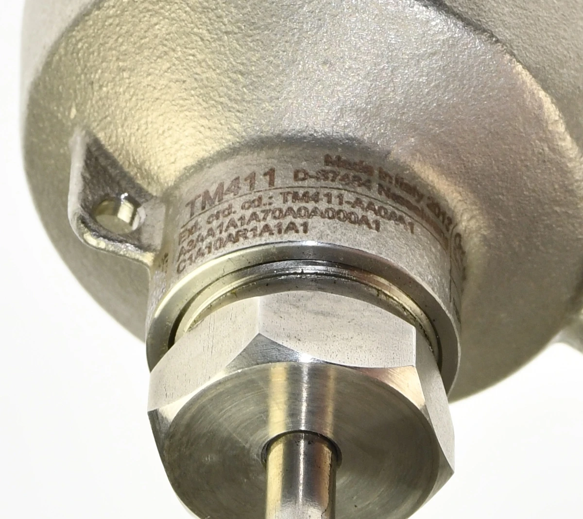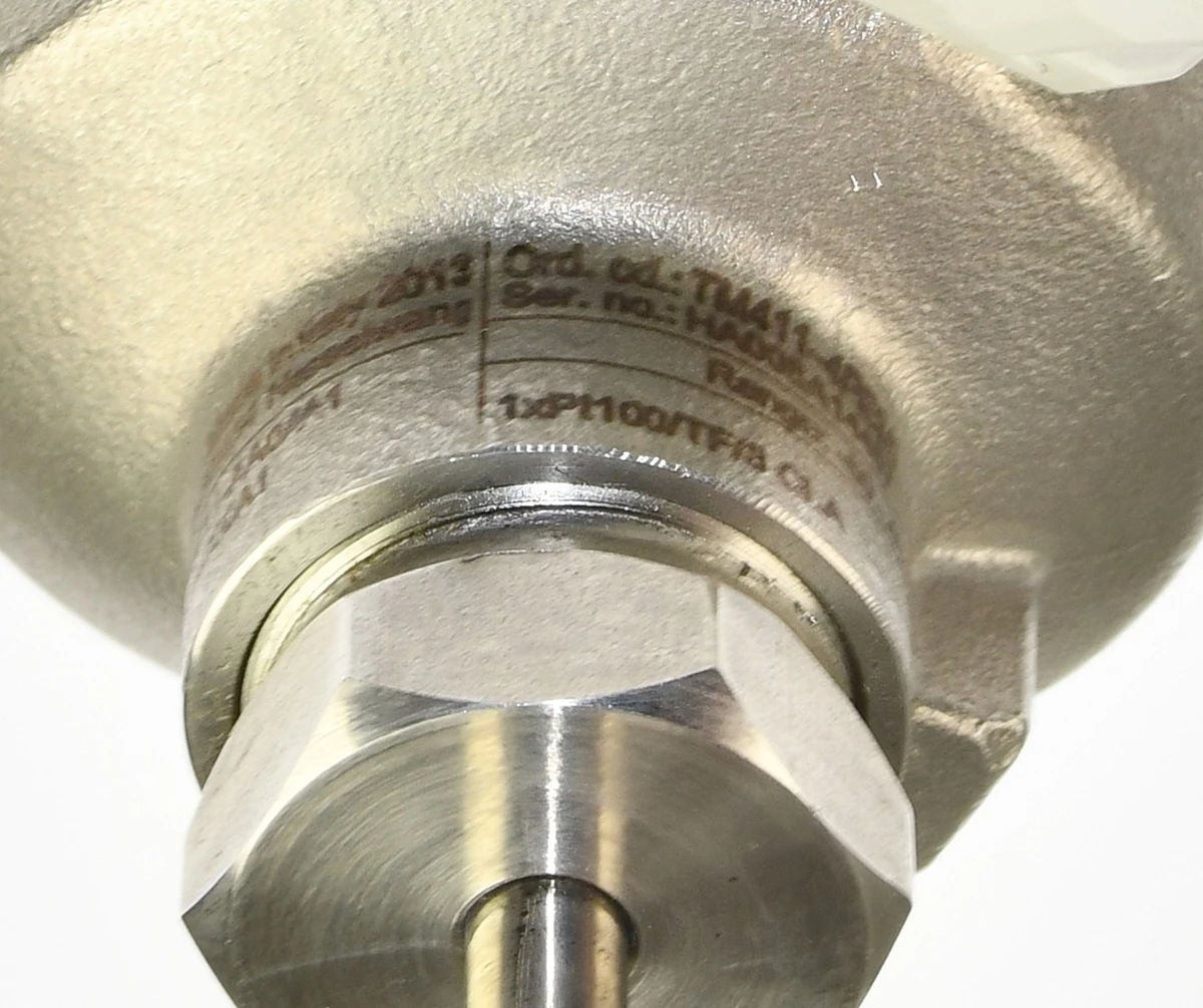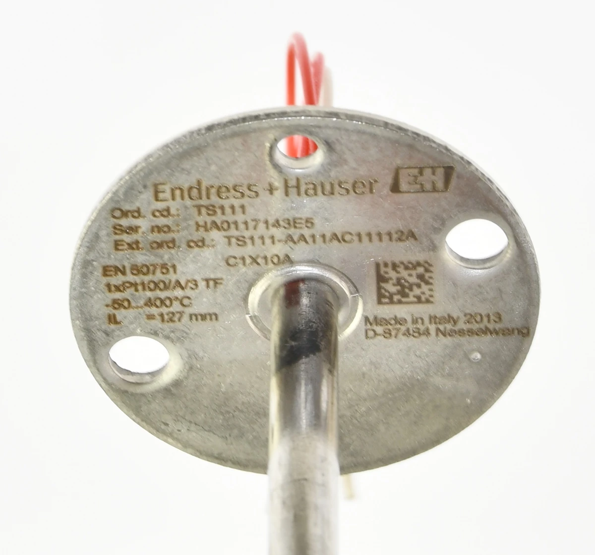 Używany, całkowicie sprawny czujnik temperatury o oznaczeniu: TM411, producent: Endress + Hauser. Czujnik temperatury 1xPt100. Wewnątrz obsadzony moduł pomiarowy o oznaczeniu: TS111. Zakres pomiarowy od -50 do + 400 stopni Celsjusza. Pochodzi z likwidowanych zasobów magazynu utrzymania ruchu.