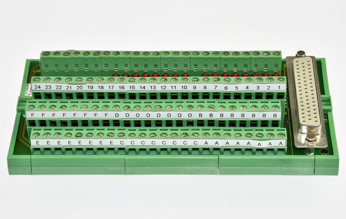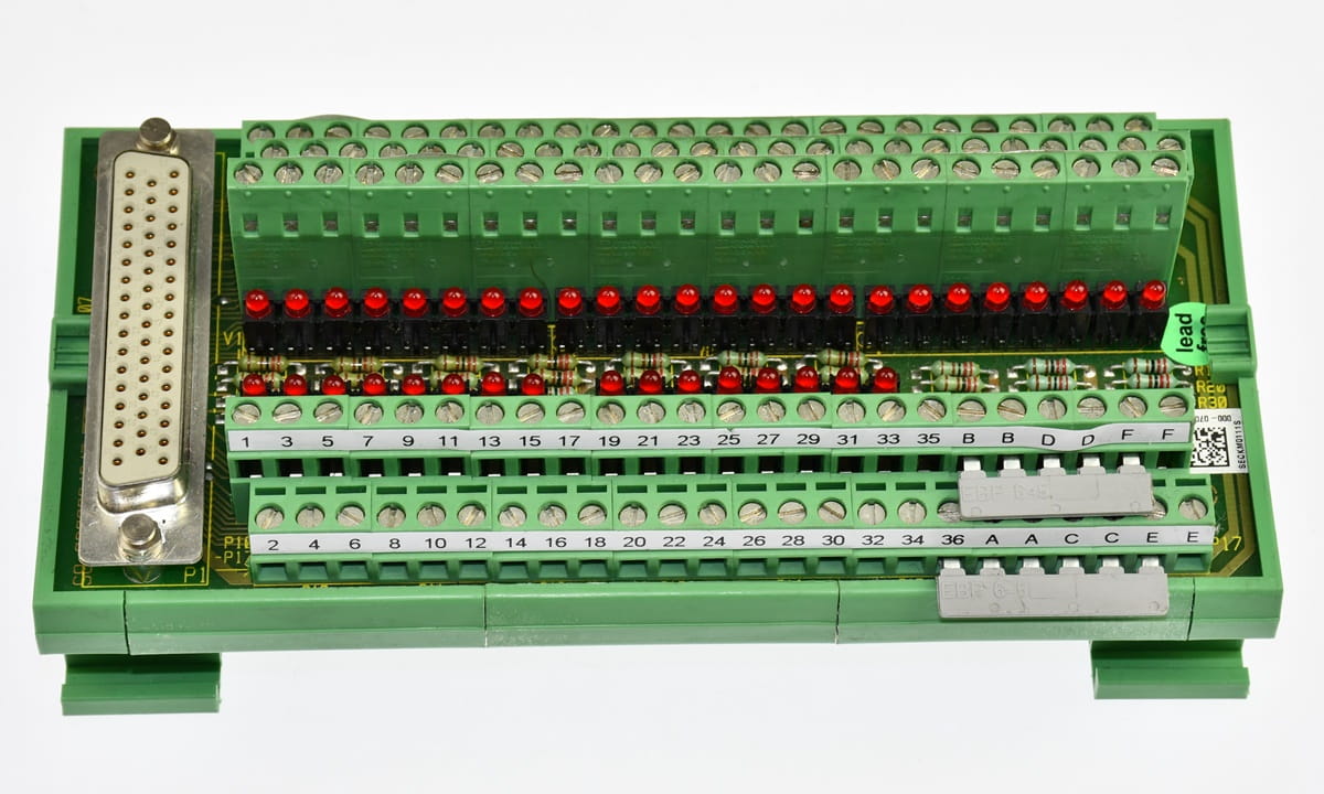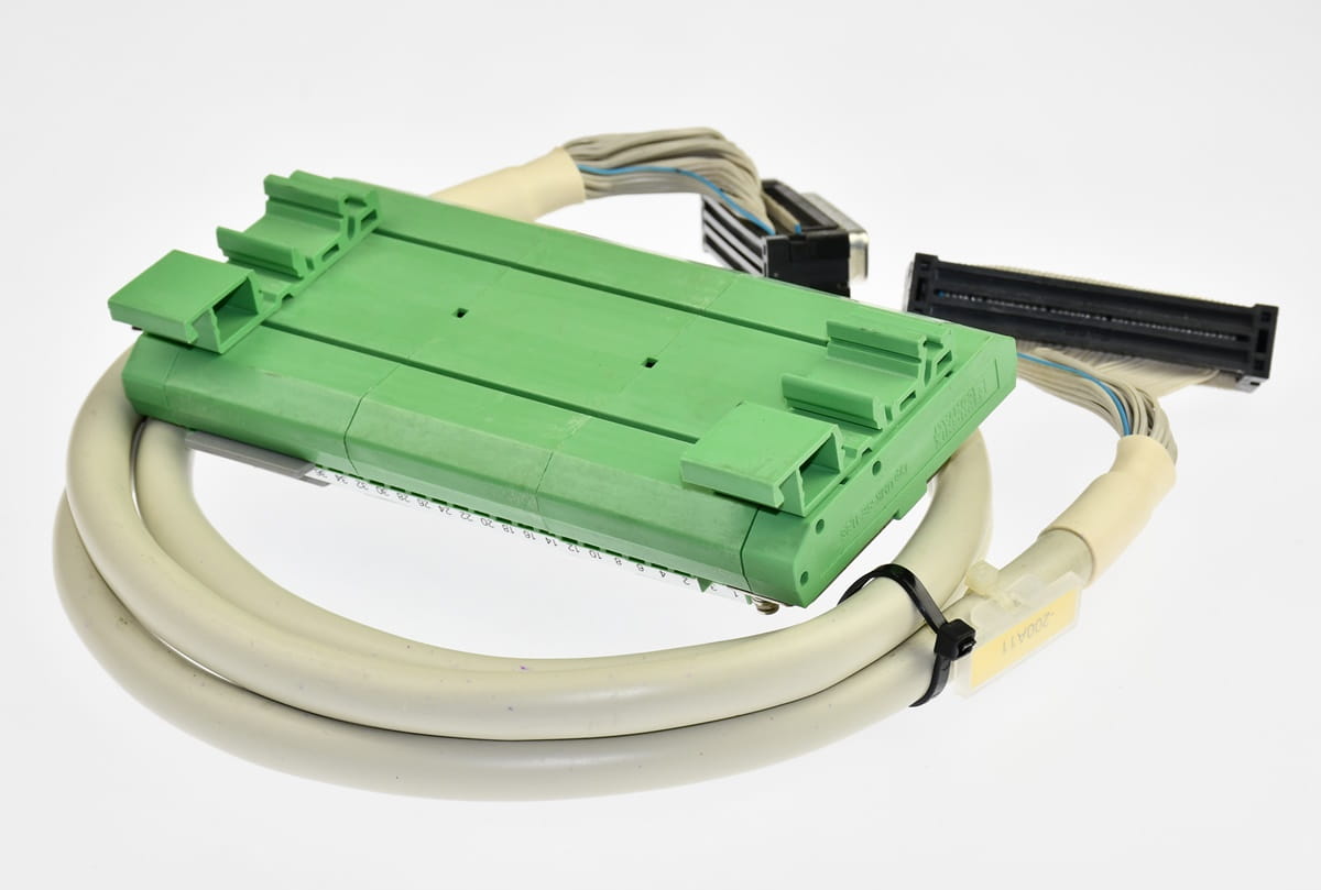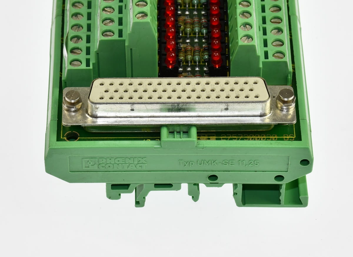 Używany, całkowicie sprawny moduł o oznaczeniu: UMK-PVB, producent Phoenix Contact. Konektor podłączeniowy, blok zacisków na szynę DIN. W zestawie jest przewód z wtyczkami D-SUB. Pochodzi z demontażu całkowicie sprawnych maszyn przemysłowych. Pochodzi z demontażu całkowicie sprawnych maszyn przemysłowych.