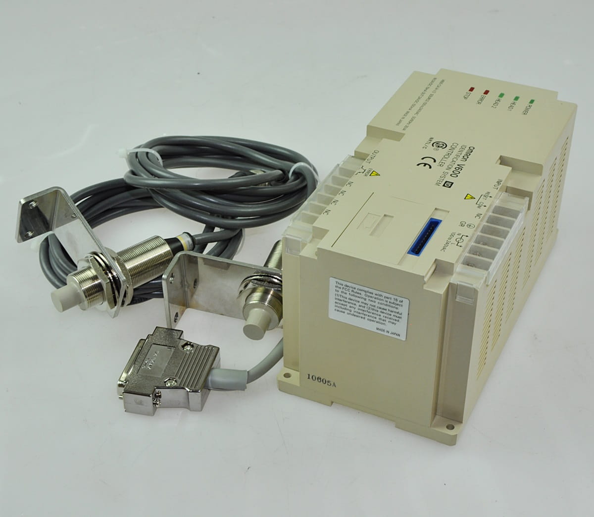 Używany, całkowicie sprawny i w idealnym stanie system zapisu i odczytu informacji RFID firmy OMRON o symbolu V600, w zestawie jest kontroler oraz dwie anteny z długimi przewodami, ich symbol V600-H52.