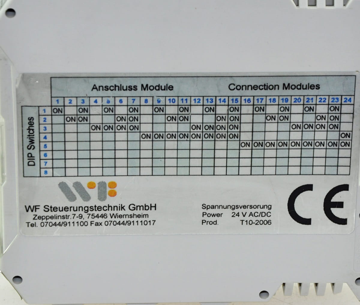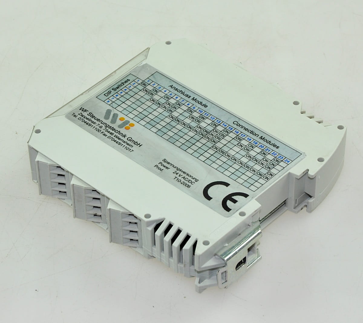Używany, całkowicie sprawny moduł firmy WF Steuerungstechnik GmbH, jest to moduł wejść i wyjść na magistrali RS-485.