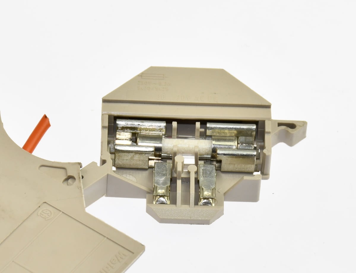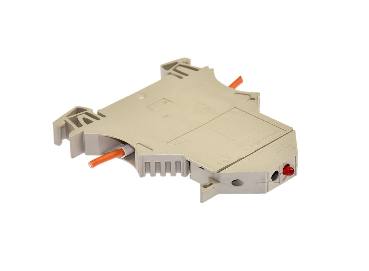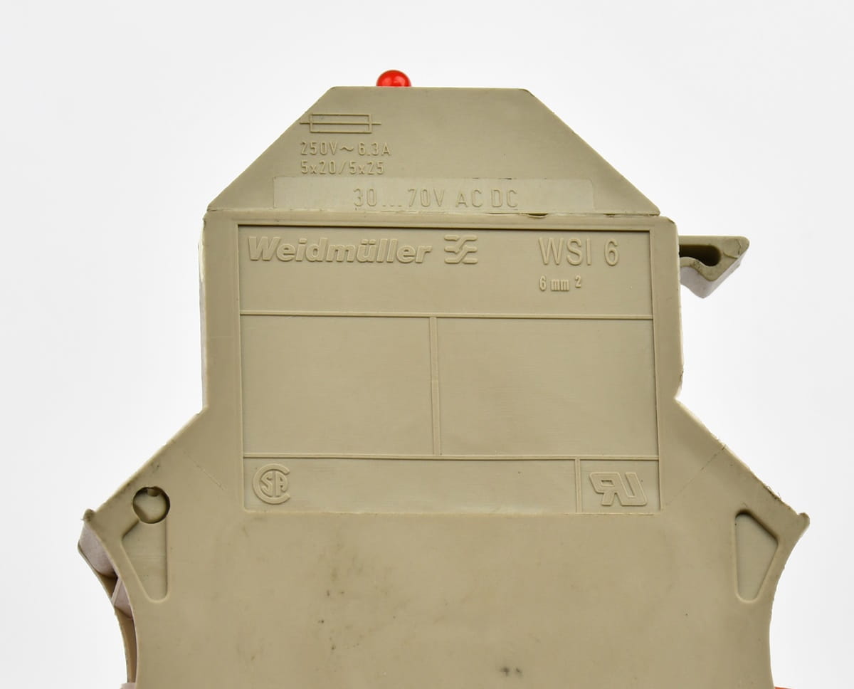 Używany, sprawny element o oznaczeniu: WSI 6 LD 250AC LLC, producent Weidmuller. Moduł bezpiecznika na szynę z sygnalizacją, pochodzą z demontażu całkowicie sprawnych maszyn przemysłowych.