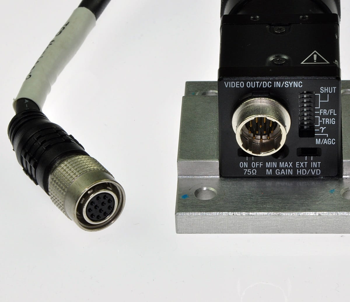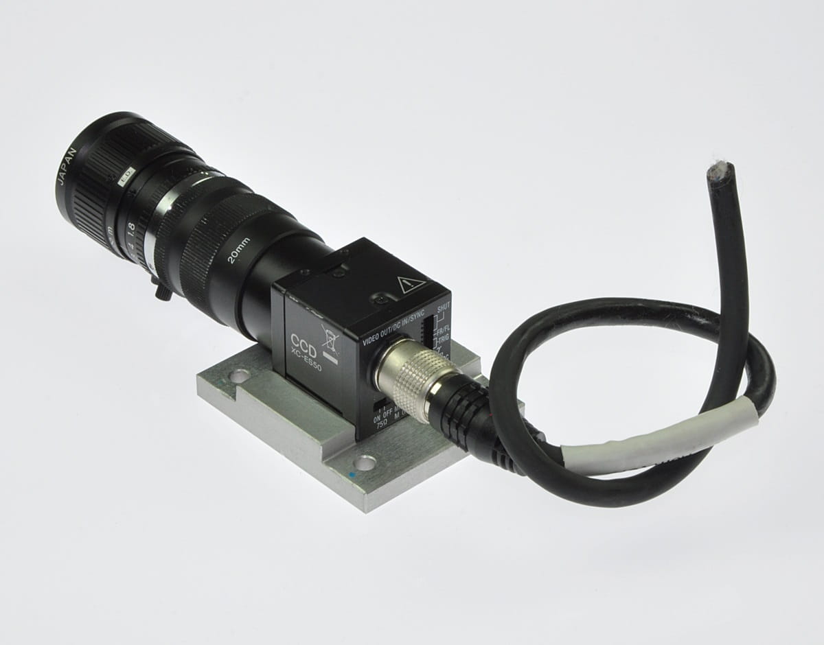 Używany, całkowicie sprawny zestaw kamery inspekcyjnej, która pracowała na szybkiej linii przemysłowej. Kamera renomowanej firmy SONY, jej symbol: XC-ES50. Kamerę sprzedajemy w komplecie z widocznym na zdjęciach obiektywem. Są też wtyczki z odcinkami przewodów. Kamera ma rozdzielczość 768 (H) x 494 (V); inne jej parametry: