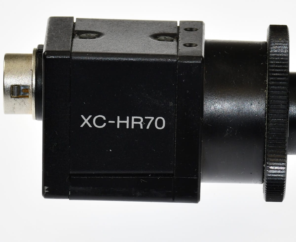 Używany, całkowicie sprawny zestaw kamery inspekcyjnej, która pracowała na szybkiej linii przemysłowej. Kamera renomowanej firmy SONY, jej symbol: XC-HR70. Kamerę sprzedajemy w komplecie z obiektywem oraz przewodami światłowodowymi firmy Moritex. Są też wtyczki z odcinkami przewodów. XC-HR70 to ultra-kompaktowy monochromatyczny moduł kamery, idealny do aplikacji do robienia zdjęć w wysokiej rozdzielczości.