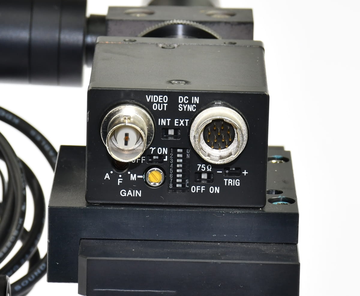 Używany, całkowicie sprawny zestaw kamery inspekcyjnej, która pracowała na szybkiej linii przemysłowej. Kamera renomowanej firmy SONY, jej symbol: XC-ST50. Kamerę sprzedajemy w komplecie z optyką oraz oświetlaczem LED MCEP-CW8. Są też wtyczki z odcinkami przewodów. W zestawie są także dwa stoliki mikrometryczne firmy MISUMI. Pochodzi z demontażu całkowicie sprawnych maszyn przemysłowych.