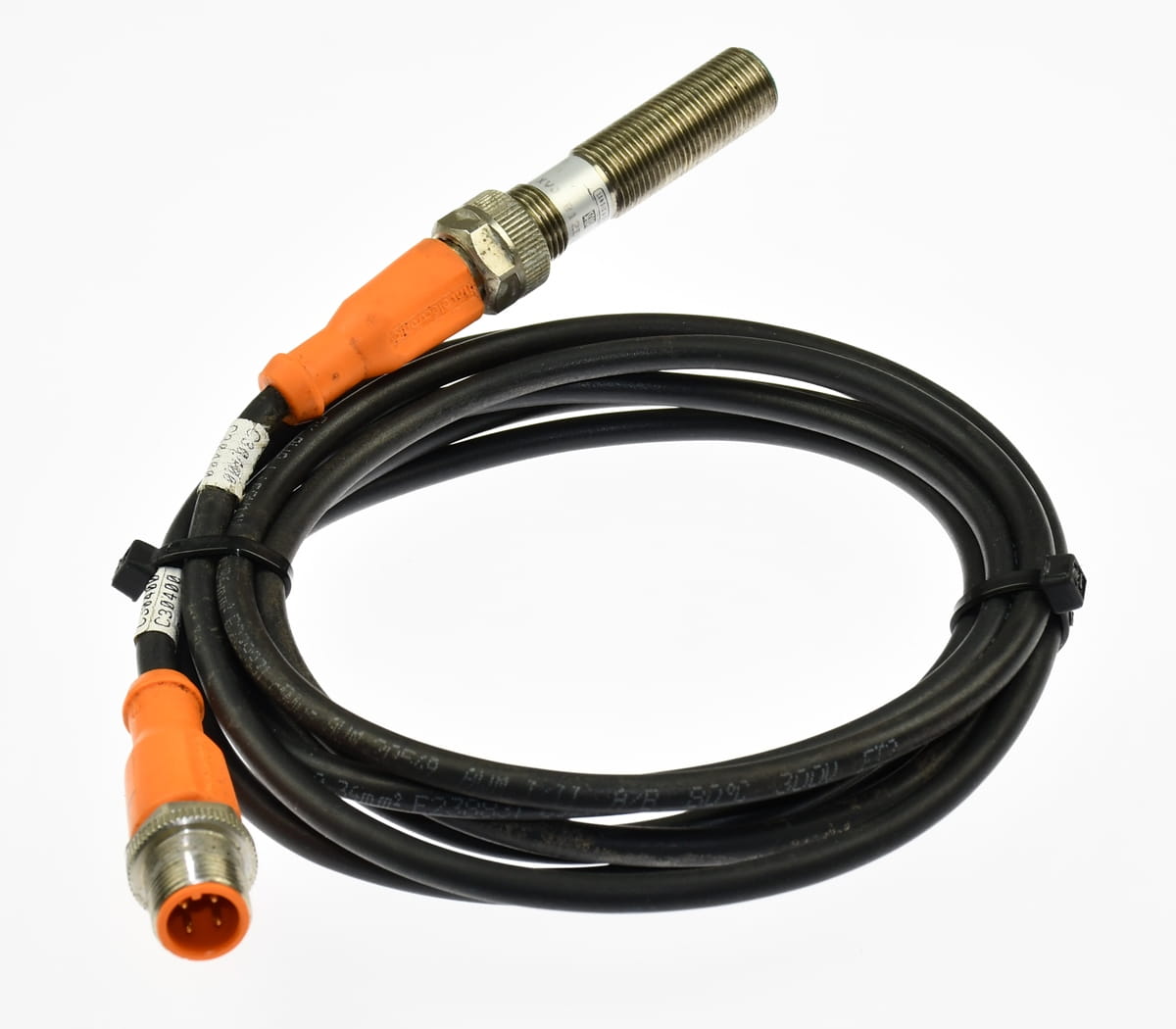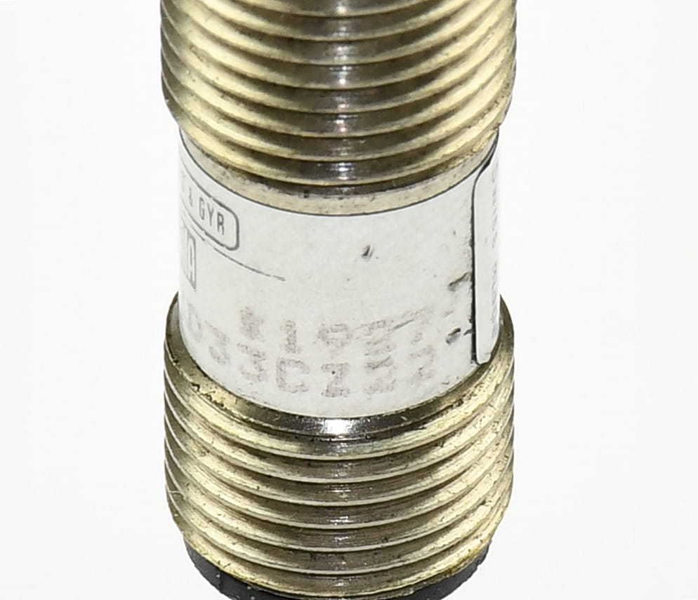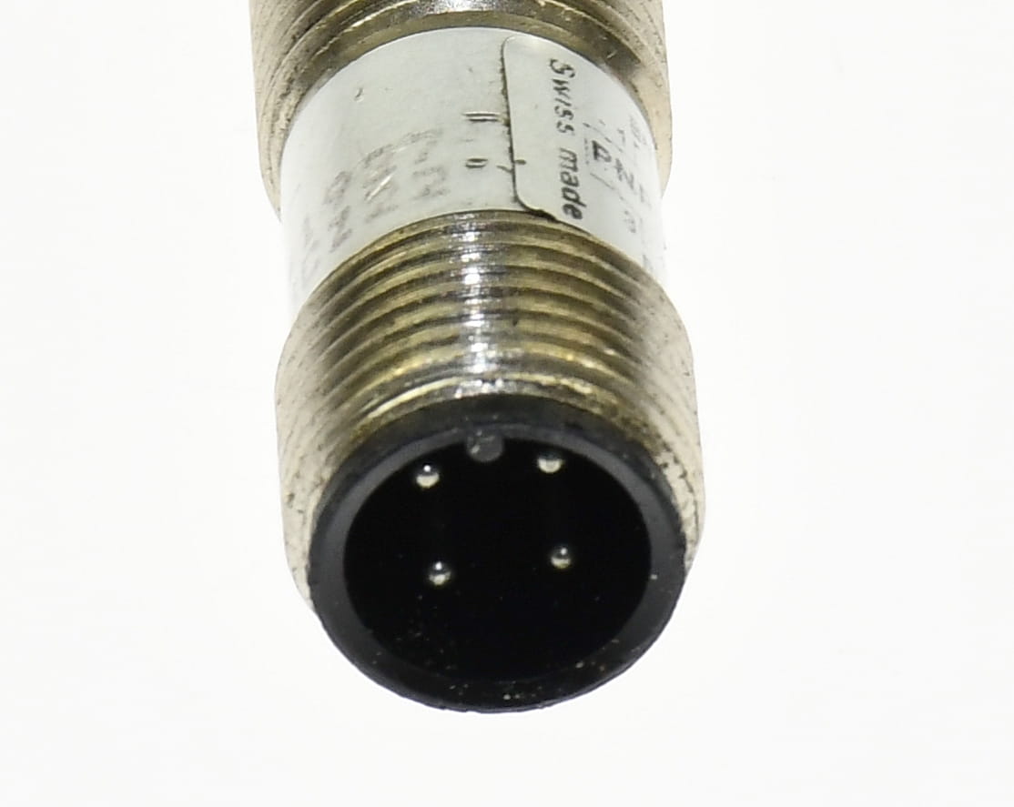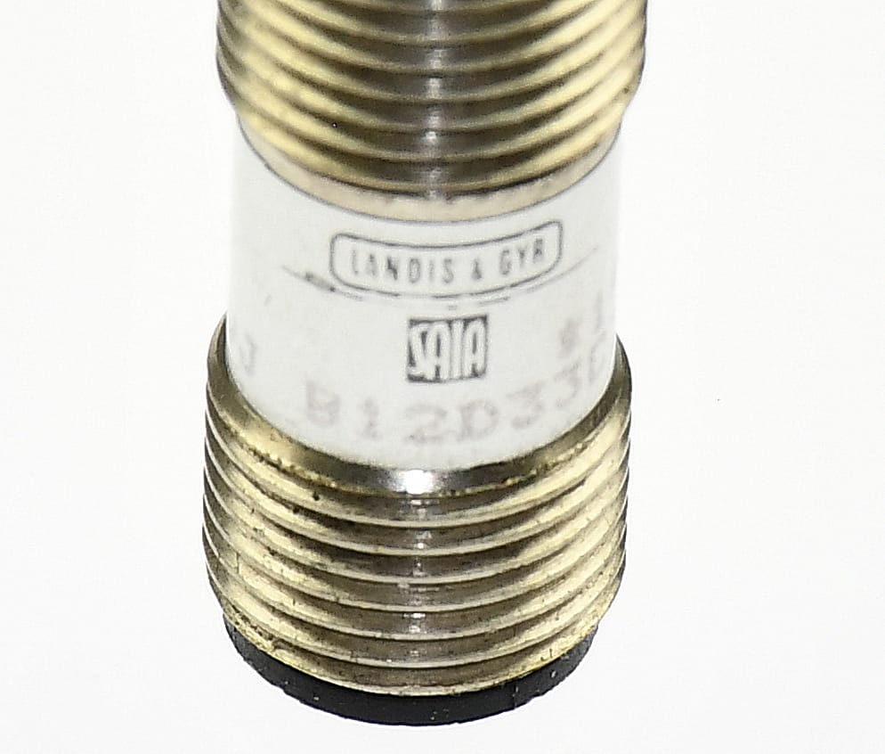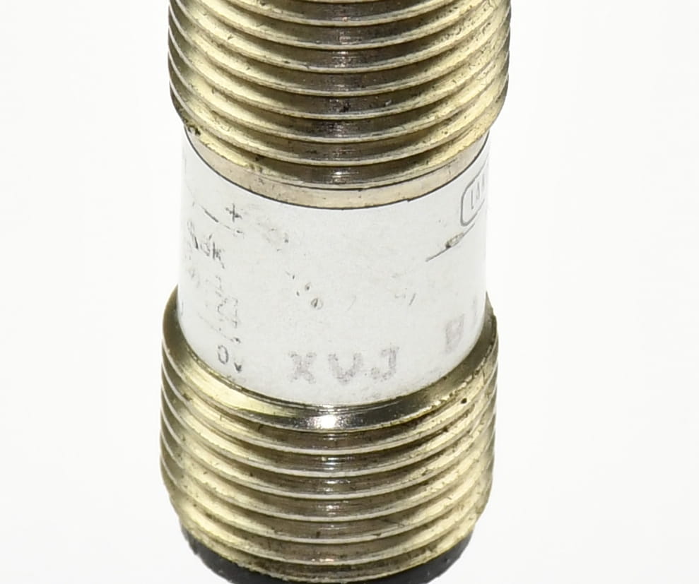 Używany, całkowicie sprawny czujnik indukcyjny o symbolu: XVJ B12D33CZ22 produkt firmy SAIA Landis&Gyr. Pochodzi z demontażu całkowicie sprawnych maszyn. Czujnik z przewodem ekranowanym zakończonym wtyczkami M12 męską i żeńską.
