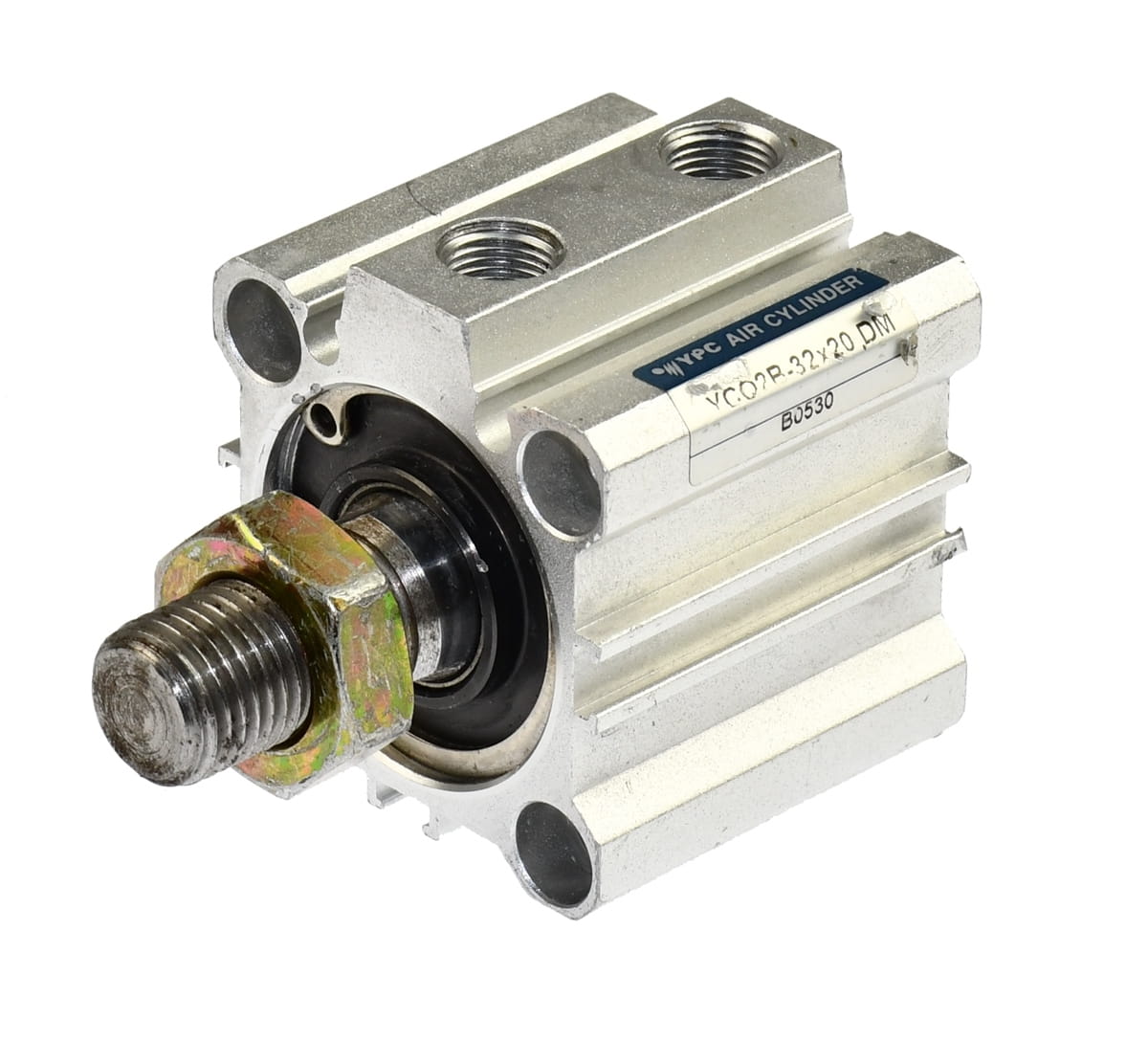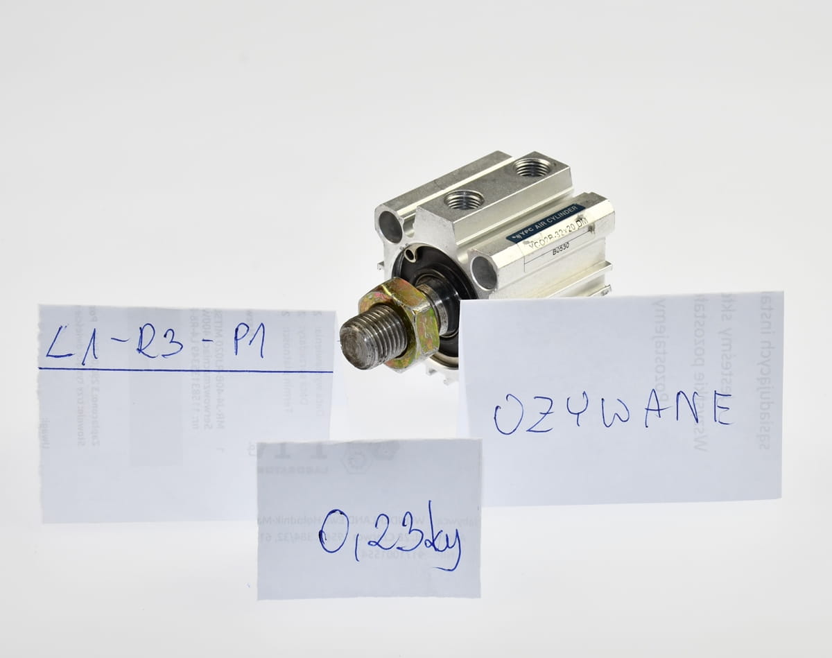 Używany, całkowicie sprawny siłownik pneumatyczny obustronnego działania o oznaczeniu: YCQ2B-32x20 DM, produkt firmy YPC AIir Cylinder. . Element pochodzi z demontażu całkowicie sprawnych maszyn przemysłowych, stan widoczny na załączonych zdjęciach.