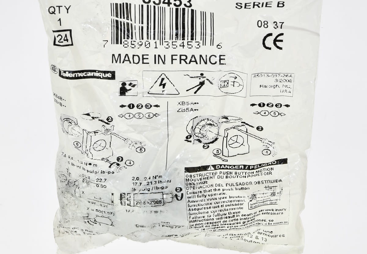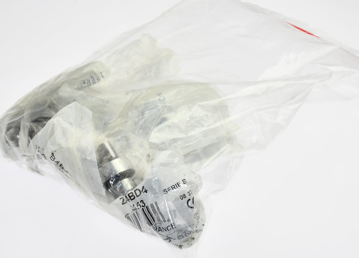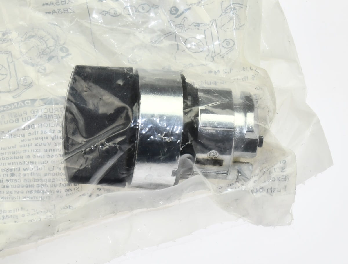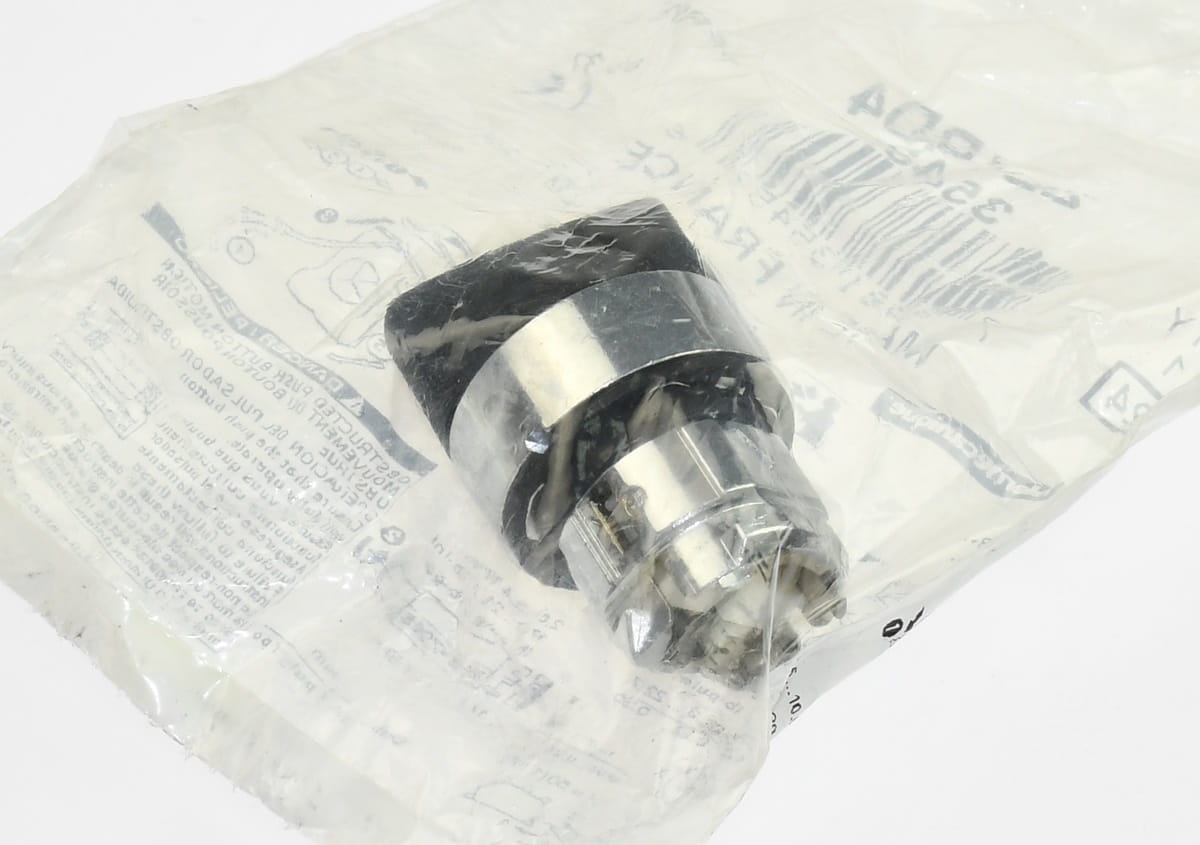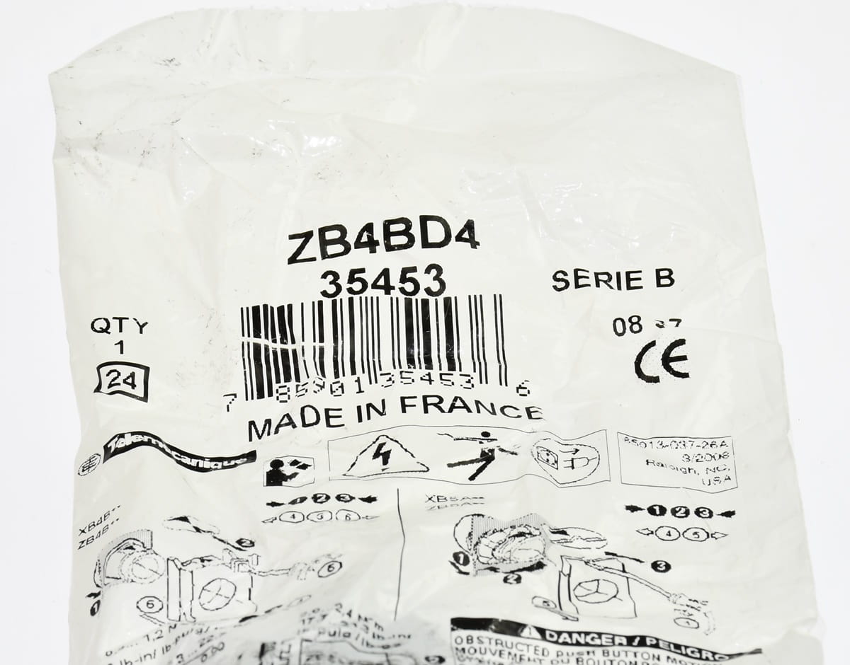 Nie używany element o oznaczeniu: ZB4BD4, produkt firmy: Telemecanique, kod produktu: 35453, rodzina: Harmony XB4. Główka przełącznika 2 pozycyjnego z samoczynnym powrotem, czarny metalowy. W oryginalnym woreczku producenta. Pochodzi z likwidowanych zasobów magazynu utrzymania ruchu.