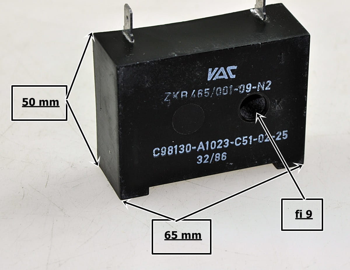 Używany, całkowicie sprawny i w idealnym stanie element o symbolu: ZKR465/001-09-N2, produkt firmy VAC. Transformator pomiarowy prądów przemiennych.