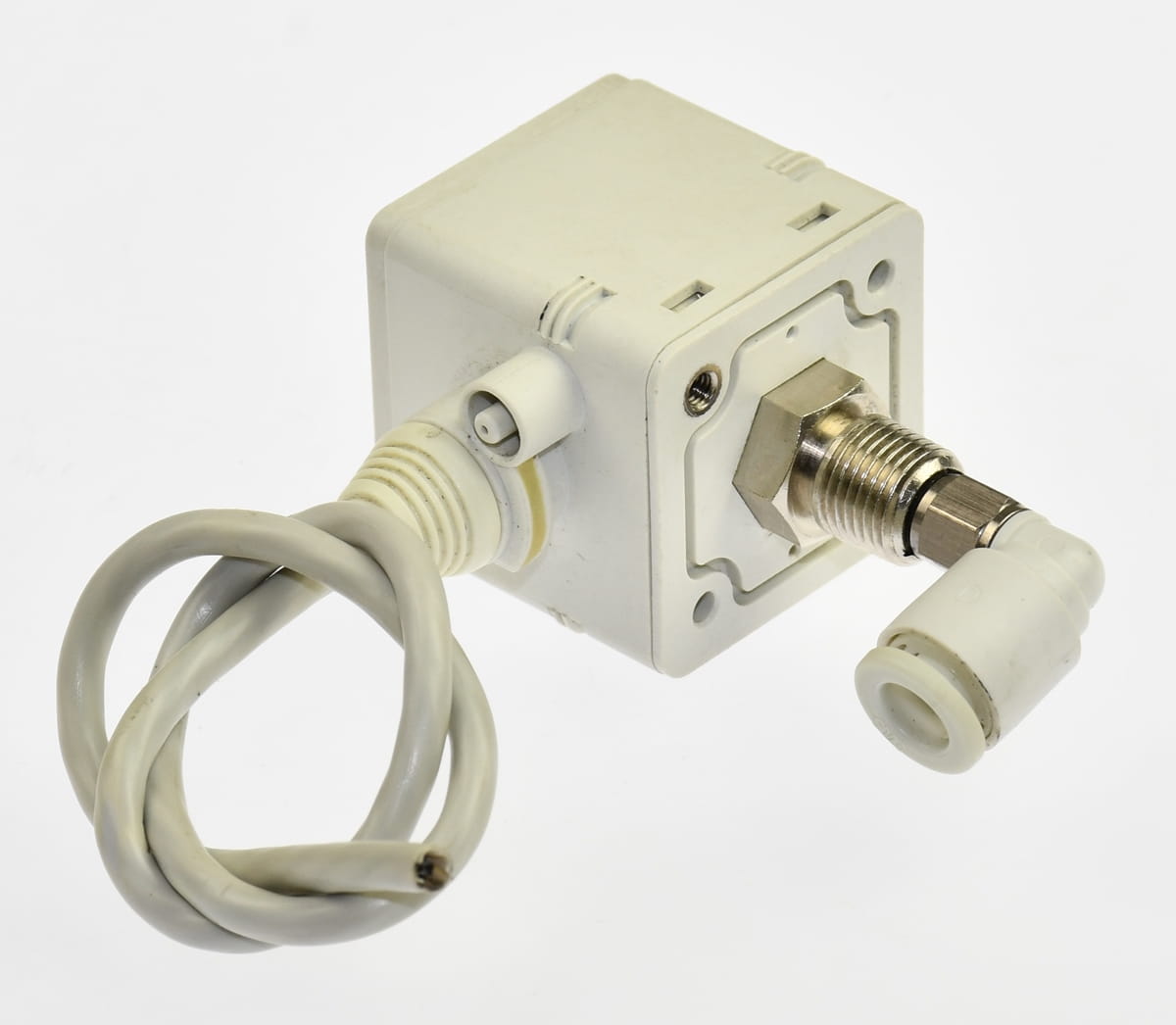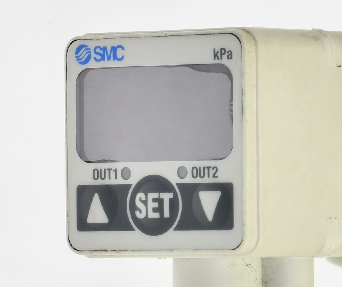 Używany, całkowicie sprawny moduł o symbolu: ZSE40-01-22, jest to precyzyjny przetwornik podciśnienia w zakresie 10 do -101,3 kPa, posiada proporcjonalne wyjście analogowe oraz dwa programowalne wyjścia binarne, które można wykorzystać do sterowania pompą próżniową, zaworem upustowym lub wedle innych potrzeb. Producentem jest renomowana firma SMC, w zestawie jest szybkozłączka do podłączenia przewodu próżni.
