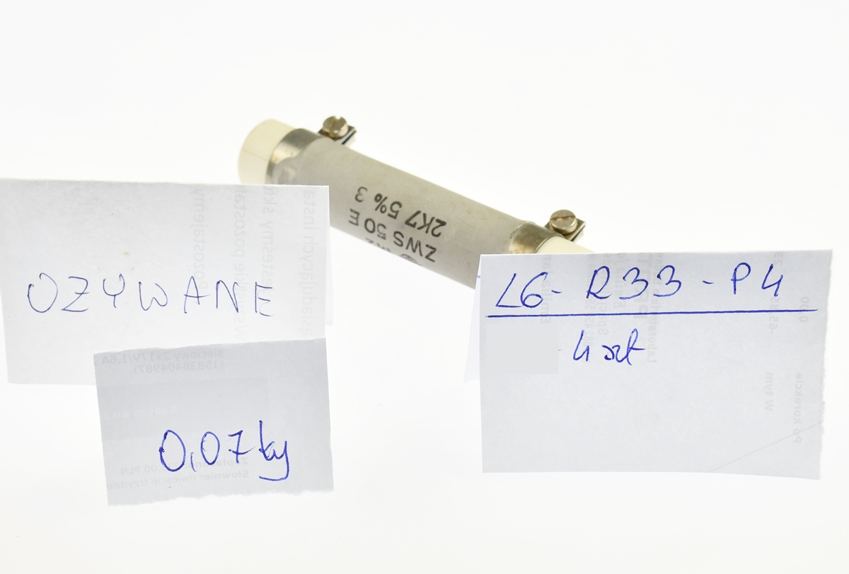 Używany, całkowicie sprawny. solidny rezystor drutowy o oznaczeniu ZWS 50 E.