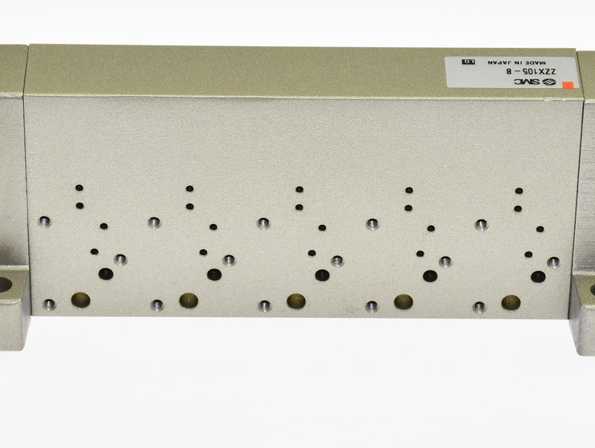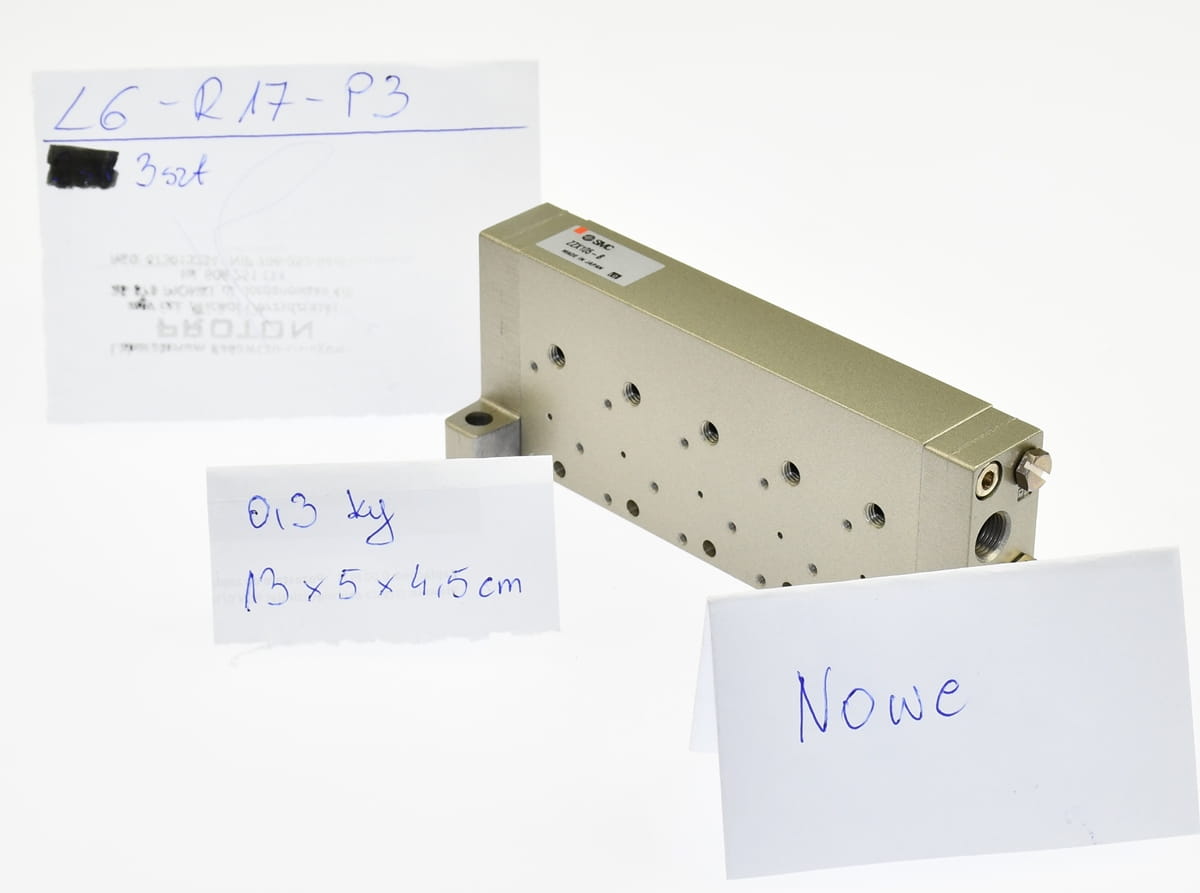 Nie używany, pochodzący z likwidowanych zasobów magazynu utrzymania ruchu element o oznaczeniu: ZZX105-B, produkt firmy SMC. Jest to blok, magistrala zbiorcza dla wielu systemów eżektorowych. Nie posiada oryginalnego opakowania, opakowanie zastępcze.